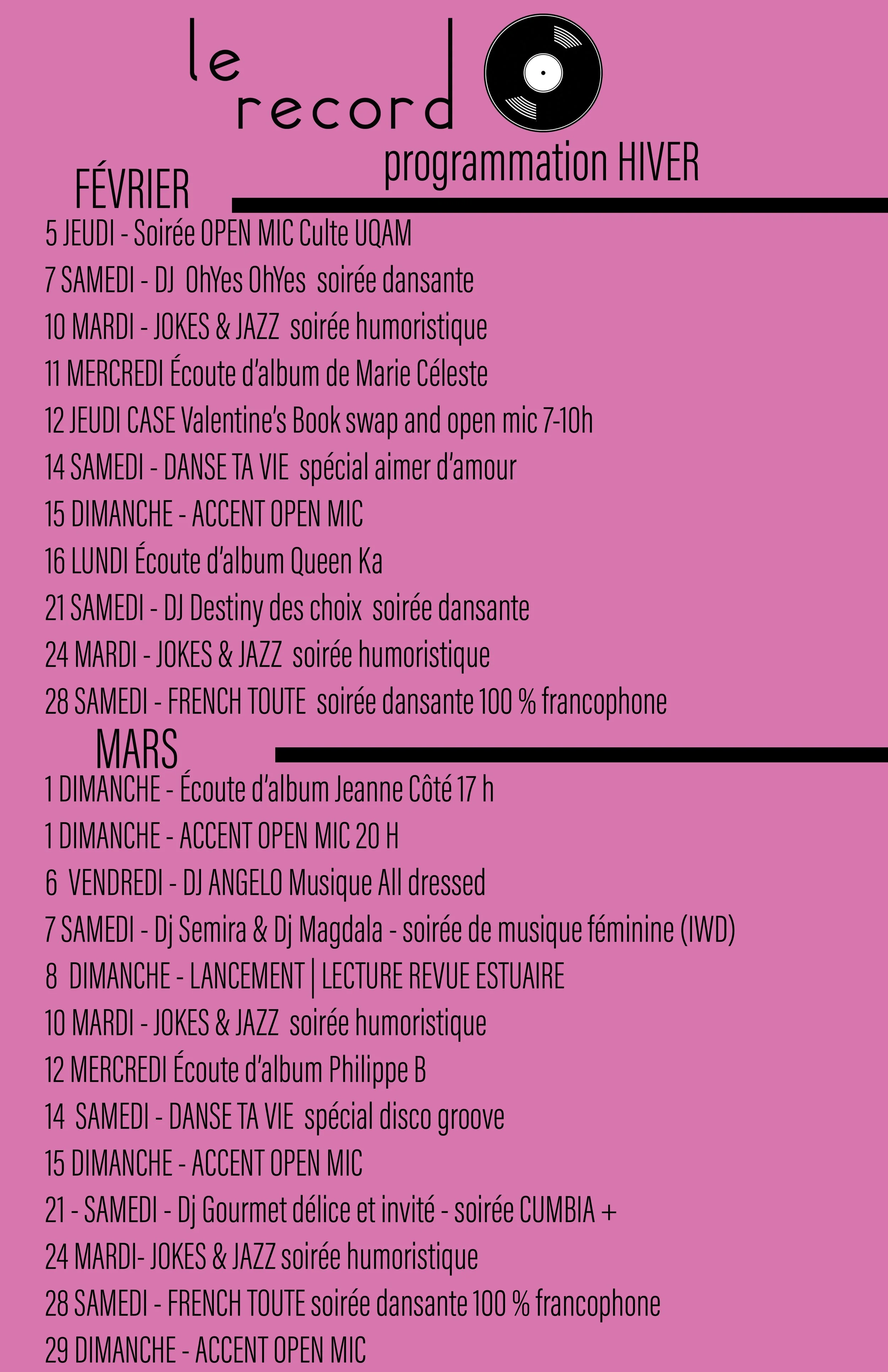 prochaines soirées 27 décembre, 30 janvier et 27 février